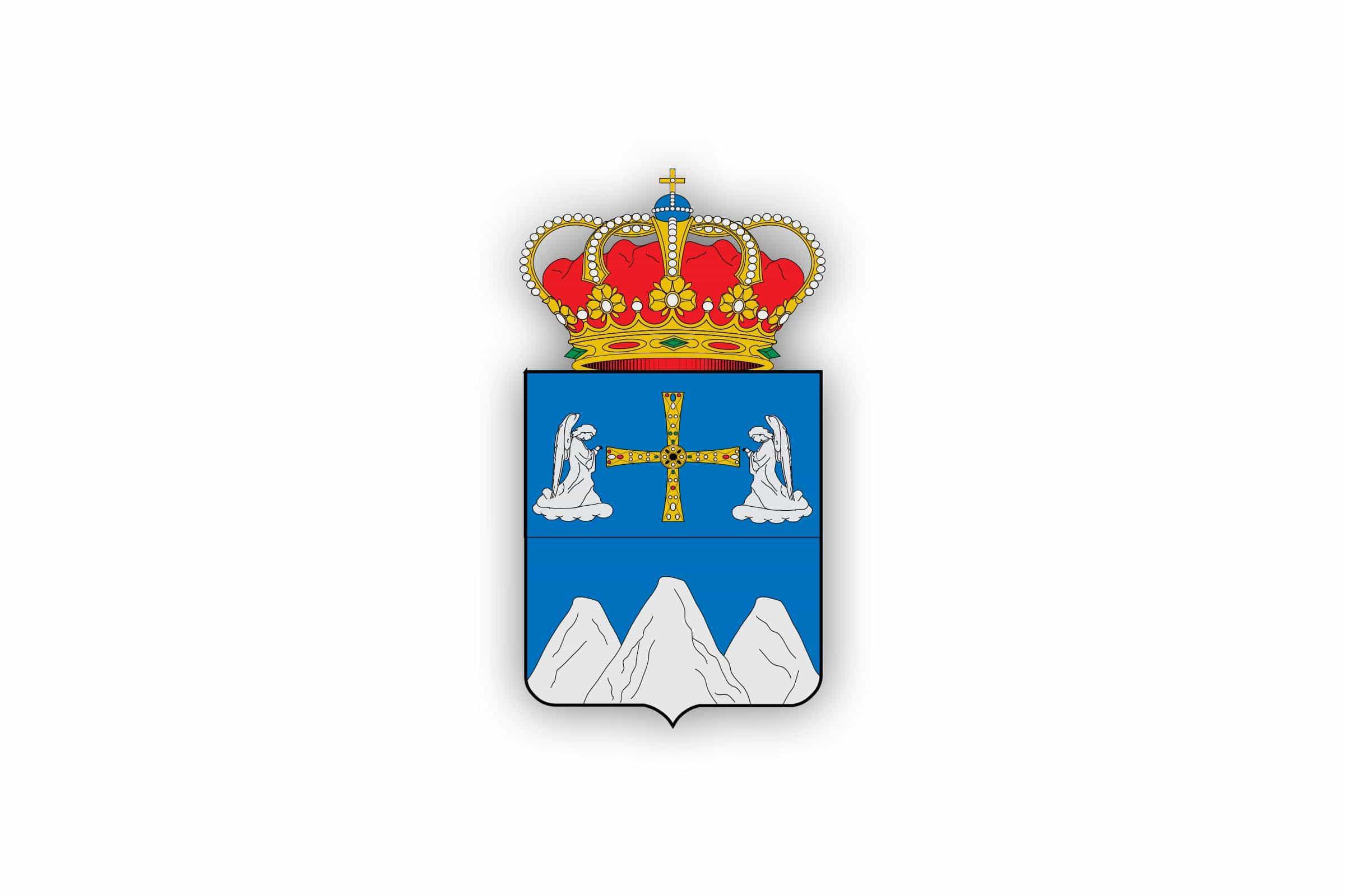 El primer cuartel representa, sobre campo de azur, la Cruz de los Ángeles, en clara referencia a su dependencia obispal durante siglos.