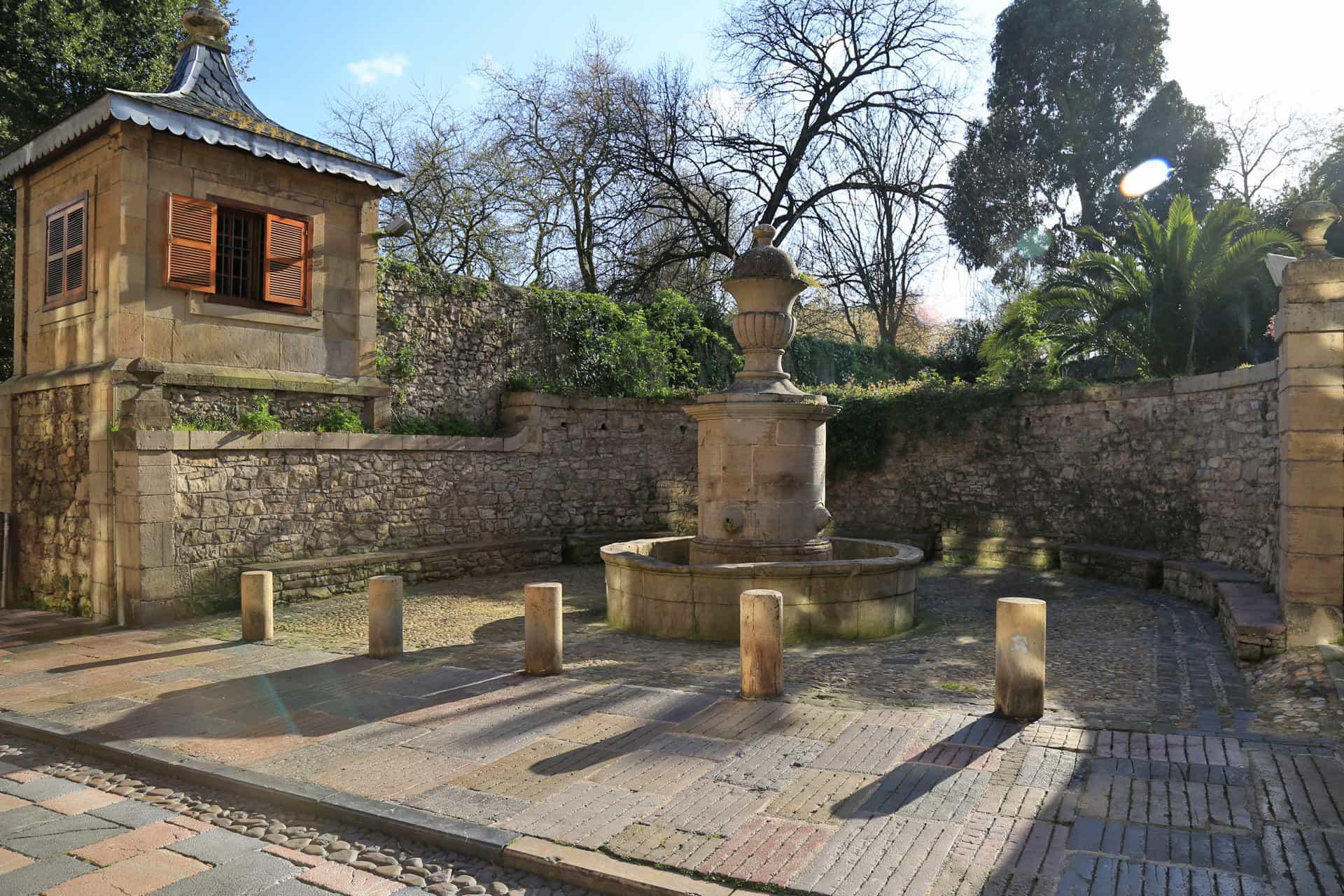 (1815), junto a la portada del parque de Ferrera, y al lado de la capilla del Cristo de Rivero. Sitos junto a la portada monumental del parque de Ferrera, al lado de la capilla del Cristo del Rivero. Cuatro caños, con un pilón circular en cuyo centro se alza un grueso cilindro de piedra, una gran copa de panza gallonada.